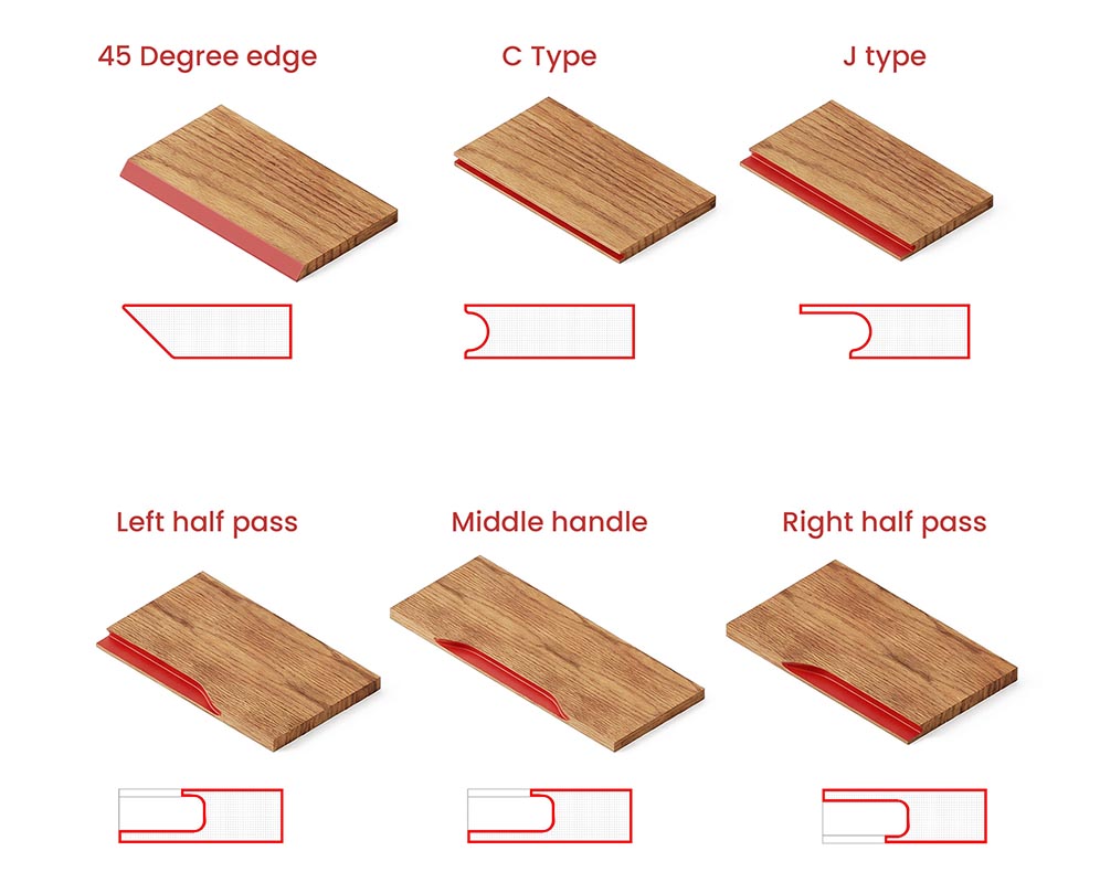L’essor des lignes épurées et des façades sans poignées exige beaucoup plus des bandes de chant qu’auparavant. Les profils à poignée intégrée – type J, type C, chanfreins 45° et autres – offrent une esthétique continue, mais exercent une forte contrainte mécanique sur le chant. Les bandes de chant standard se fissurent, blanchissent ou perdent leur forme dans ces applications.